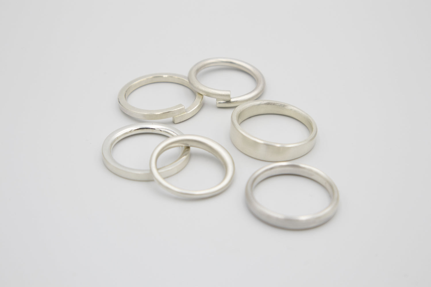I work in gold and silver, in different alloys, yellow gold, red gold, extra red gold, white gold and silver, and you choose what feeling you want the rings to have.